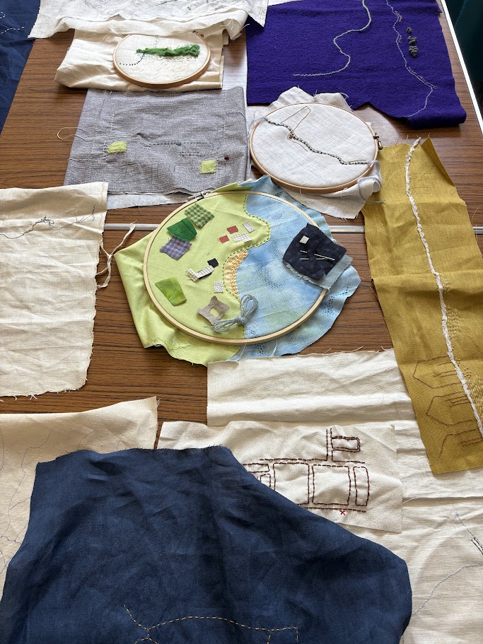 Vanessa’s techniques incorporated (but were not limited to) running stitch, fly stitch, digital machine stitching, couching, hand stitching, fabric dyeing, piecing cottons, linens and denims.